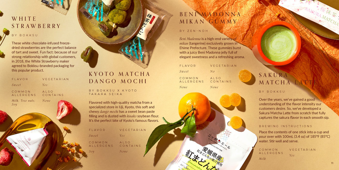 Bokksu is a fun and elevated Japanese food and subscription box service that provides a unique and tasty experience centered around Japan and its culture. Each monthly themed box includes curated snacks and an informational guide that walks the customer through the snacks and the theme.